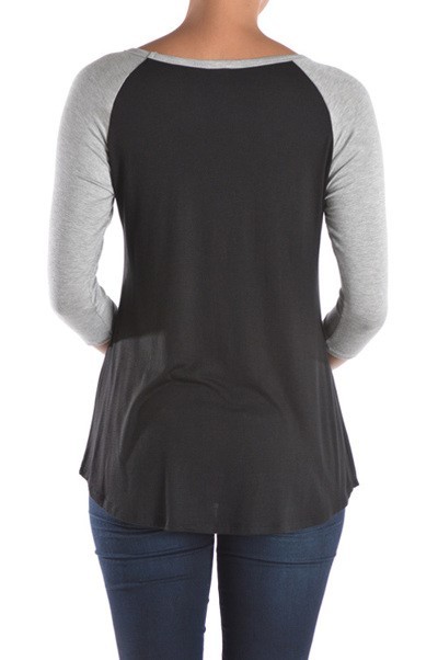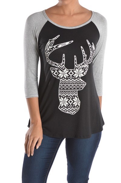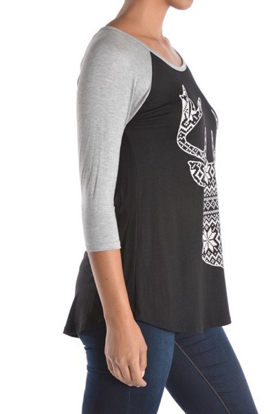 You will love this super soft baseball tee with holiday appliqué. Great for layering with leggings and boots this winter season.
