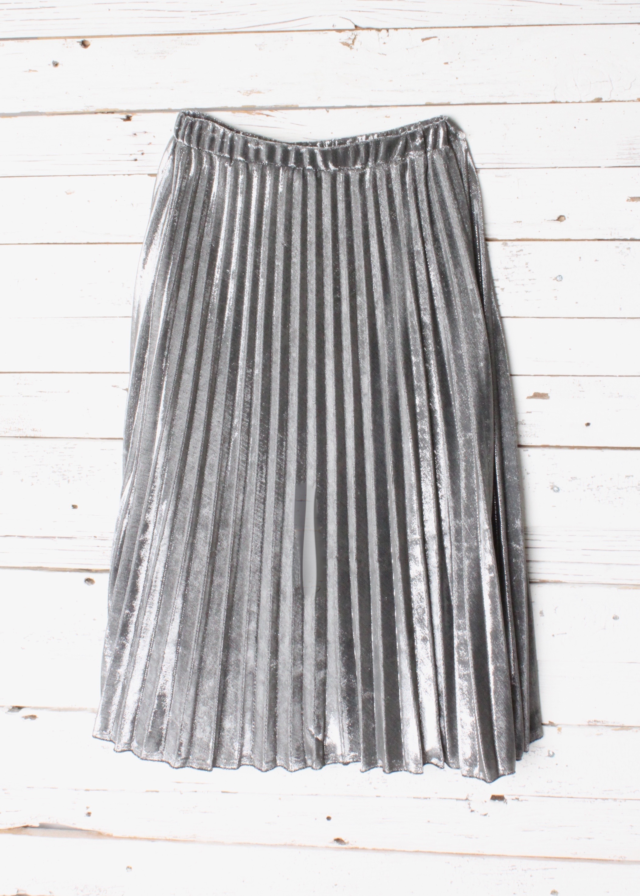 Beautiful silver knee skirt that would be perfect for a holiday party!
